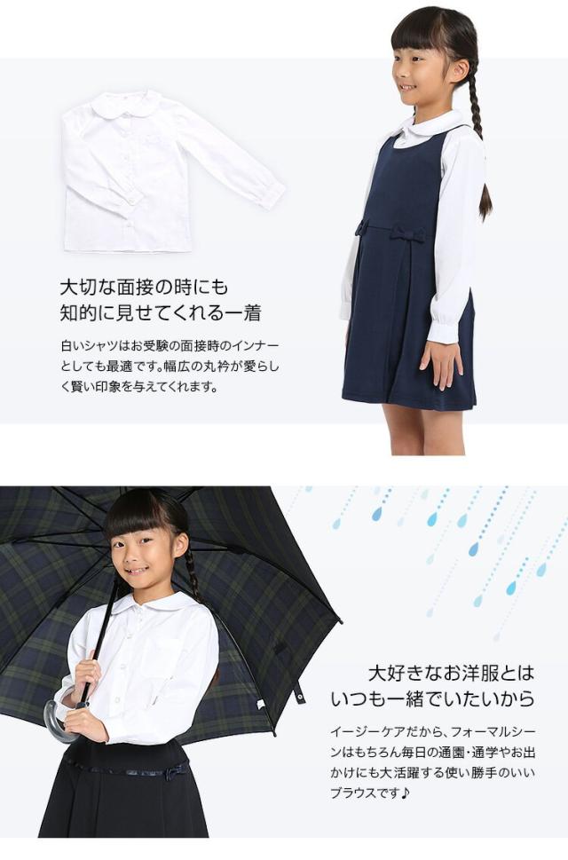 ブラウス 子供用 キッズ 長袖 白 ホワイト 洗える スクール お受験 面接 ジュニア 行動観察 通園 通学 SCH-BL11800 ゆうパケット対応