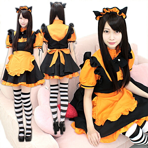 1155D★MB【送料無料・即納】メイド服 マオメイド パンプキン サイズ:M/BIG コスチューム ハロゥイン 猫耳 魔女 ネコ耳 イベント コスプレ
