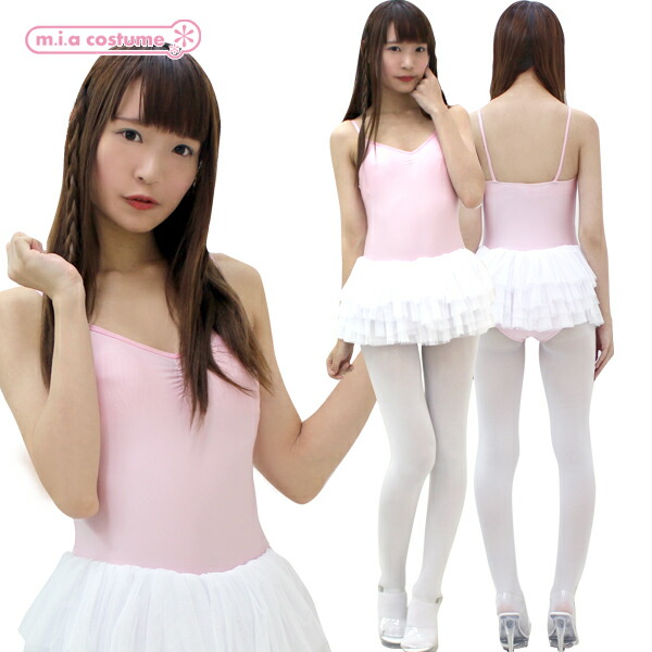 1208C■MB【送料無料・即納】チュールスカート付きキャミソールレオタード 色:ピンク×白 サイズ:M/BIG バレエ バレリーナ