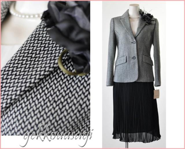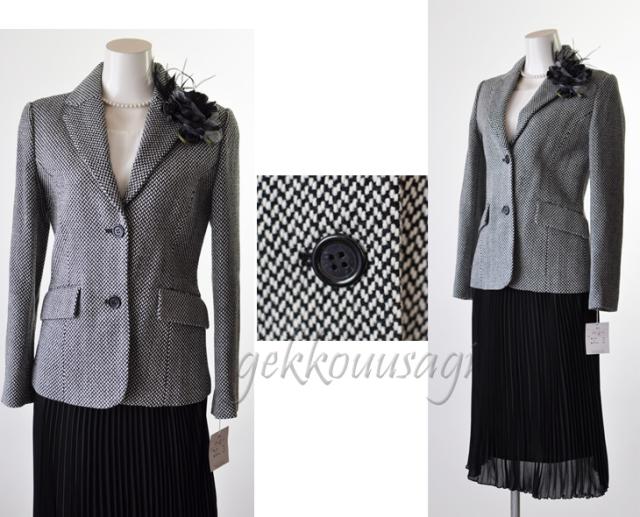 Mサイズ 着回し千鳥ウール混2つボタンジャケット・プリーツスカート2点スーツ 選べるウエストサイズ ママスーツ 021-305