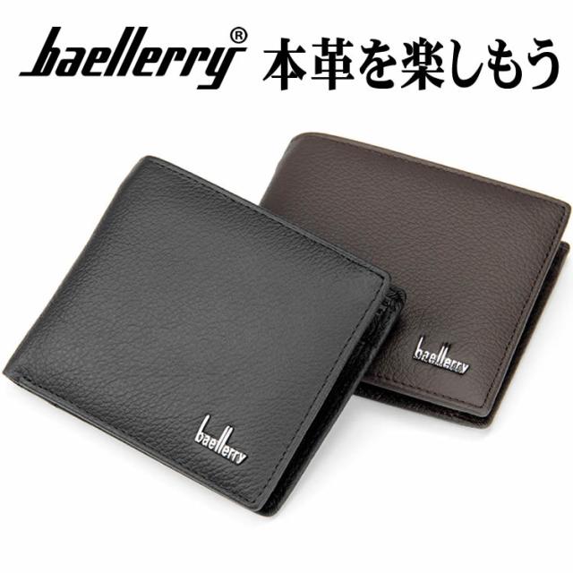 Baellerry 本革 二つ折り財布 メンズウォレット プレゼント ギフト サイフ さいふ 革 皮 メンズ 男性 レザー 小銭入れ レザー 革財布