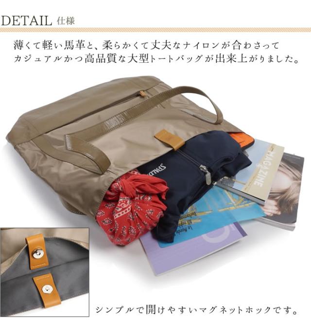 バッグ トートバッグ レディース メンズ ナイロン 馬革 日本製 Lサイズ 大容量 カジュアル グラット paccapacca