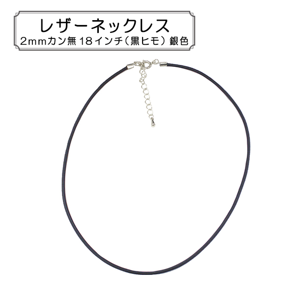 手芸金具 『レザーネックレス2mmカン無18インチ (黒ヒモ) 銀色』