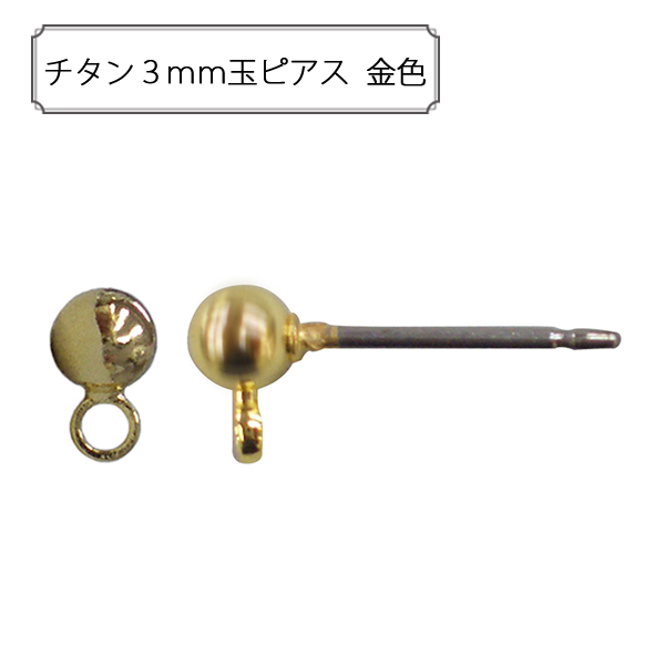 手芸金具 『チタン3mm玉ピアス 金色』