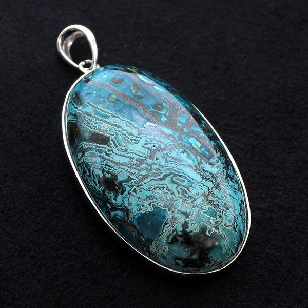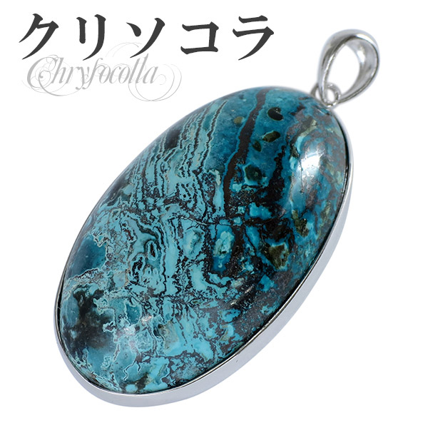 クリソコラ ペンダントトップ ペンダントヘッド シルバー オーバル型 天然石 パワーストーン クリソコーラ ペンダント