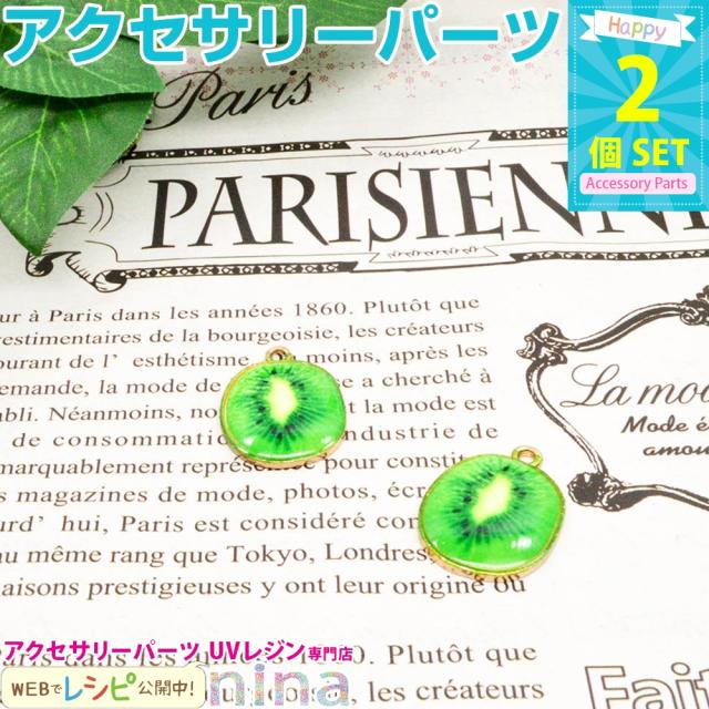 フルーツチャーム キュウイ 2個セット | フルーツチャームが可愛いアクセサリーに! / フルーツチャーム キュウイ ゴールド 金 ネックレス 手作り レジン UVレジン 果物 チャーム かわいい キーワード かわいい ハンドメイド 手芸