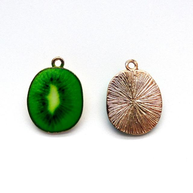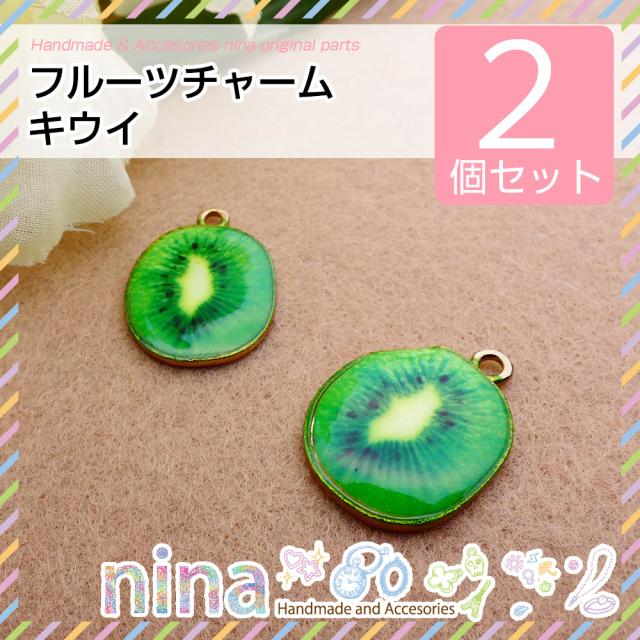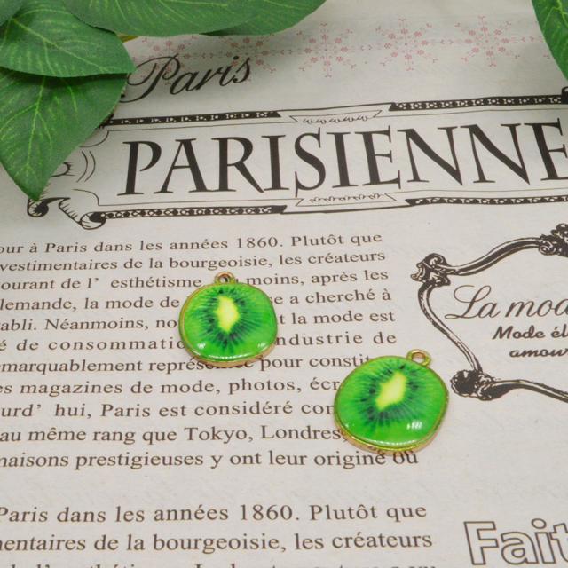フルーツチャーム キュウイ 2個セット フルーツチャーム 金 手作り フルーツチャーム キーワード キュウイ チャーム ゴールド ハンドメイド かわいい ネックレス 手芸 かわいい 果物