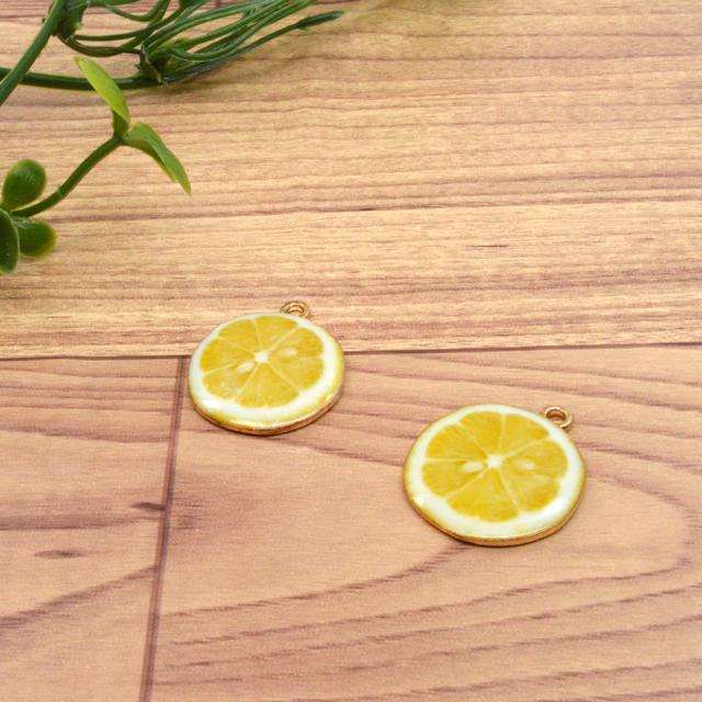 フルーツチャーム レモン 2個セット レモン チャーム 素材 レモン 果物 フルーツチャーム かわいい 金 手作り ネックレス キーワード UVレジン 材料 かわいい
