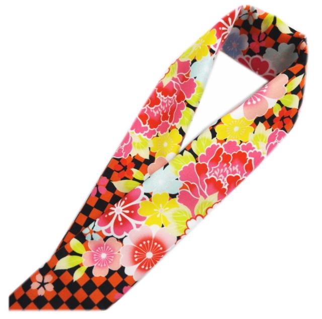 半衿 半襟 和柄 赤黒市松地牡丹桜 日本製 振袖 成人式 卒業式 袴 着物 女性用 はかま きもの 総柄