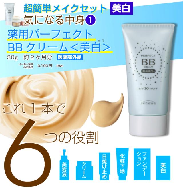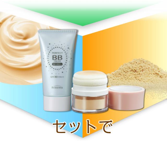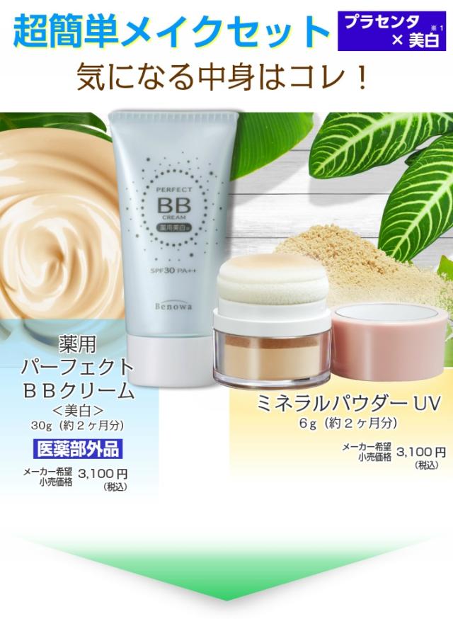 セット内容:薬用パーフェクトBBクリーム <美白> 30g 1本、ミネラルパウダーUV 6g 1個