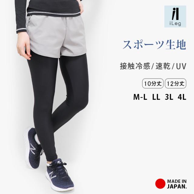レギンス スポーツ レディース 10分丈 12分丈 日本製 インナー 接触冷感 吸汗速乾 ドライ UVカット ジム 3L 4L 【iLeg】 *2 *y3-2t