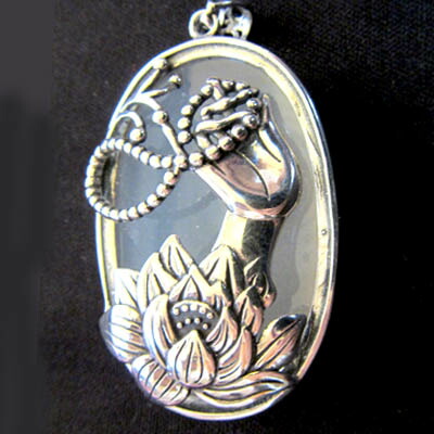 シルバー ロータス&白めのう ペンダント手 【送料無料】(沖縄別途700円) | silver,ジュエリー,アクセサリー,ネックレス,中国,中華街,アジアン,レトロ,雑貨,ノスタルジック,昭和,お土産,ギフト,プレゼント ro1109