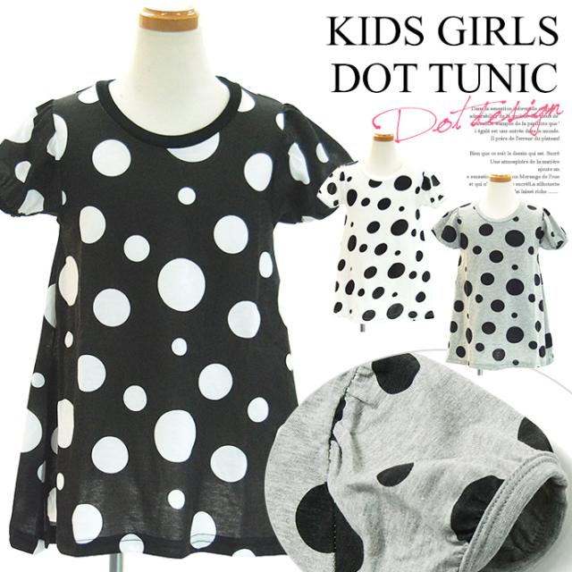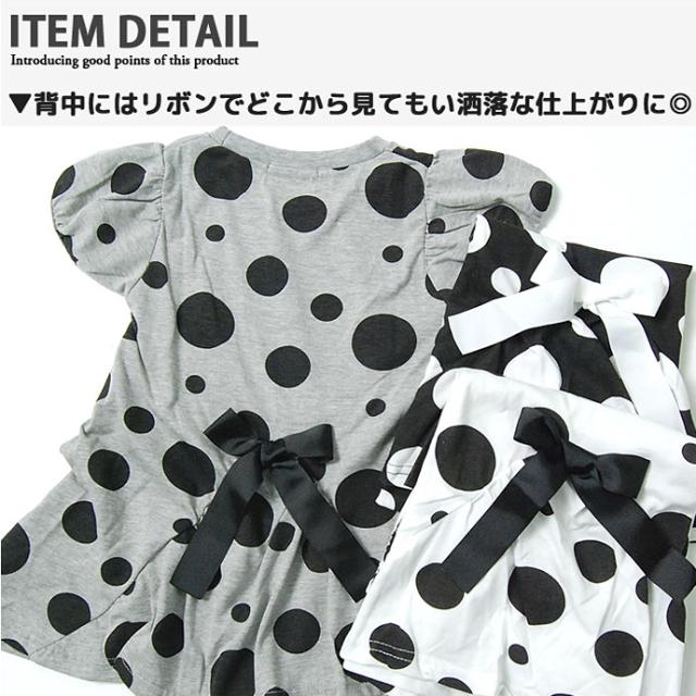値下げ 子供服 カットソー ワンピース キッズ 女の子 Tシャツ 半袖 チュニック ドット リボン バックリボン【メ】