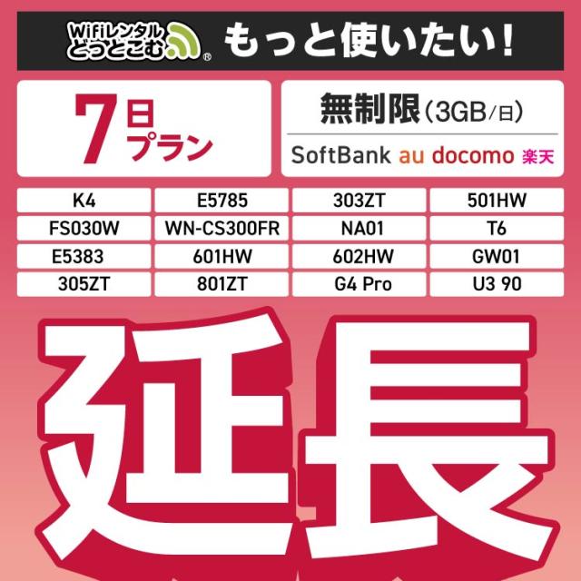 【延長専用】無制限(3GB/日)7日プラン E5785 FS030W WN-CS300FR wifi レンタル ルーター wi-fi ポケットwifi