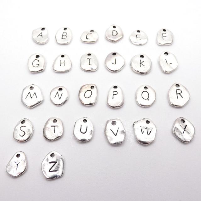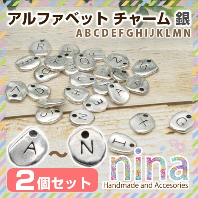 アルファベット 英字 イニシャル チャーム シルバー 2個セット A-M イニシャルチャーム シルバー ネックレス イニシャルチャーム 手芸 アルファベットチャーム 手作り N 銀 ハンドメイド UVレジン ローマ字 アクセサリー レジン