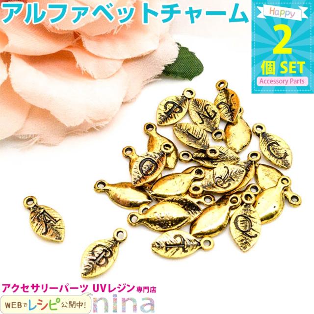 アルファベット 英字 イニシャル チャーム 葉 ゴールド 2個セット O-Z | 手芸 イニシャルチャーム レジン アルファベットチャーム アクセサリー キーホルダー チャーム ペンダント リーフ かわいい 金 葉 手作り 材料 ハンドメイド UVレジン ローマ字 ゴールド 文字
