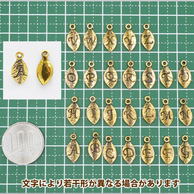 ■商品名:アルファベット 英字 イニシャル チャーム 葉 ゴールド Z 2個セット