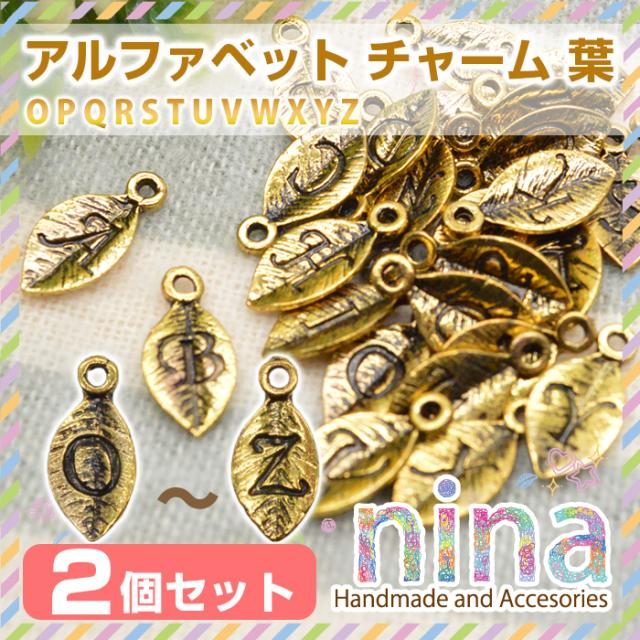 アルファベット 英字 イニシャル チャーム 葉 ゴールド 2個セット O-Z アルファベットチャーム チャーム 手芸 アルファベットチャーム 手作り イニシャルチャーム リーフ Z レジン 金 葉 キーホルダー UVレジン ハンドメイド