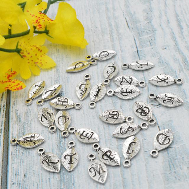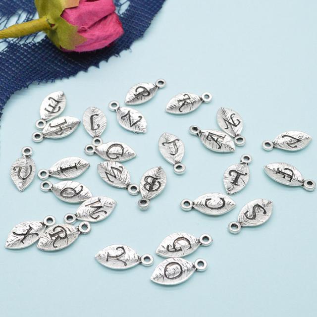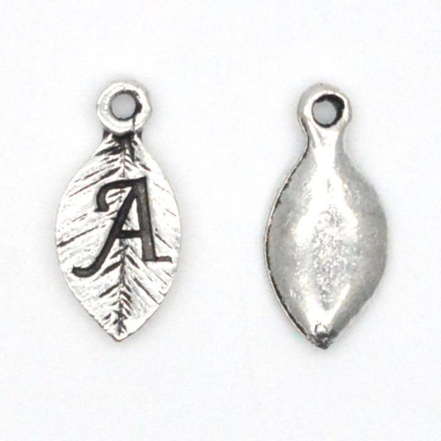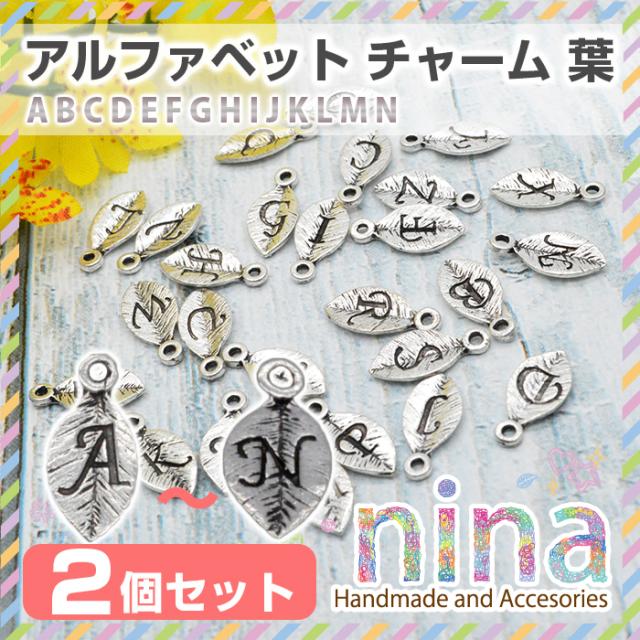 ■商品名:アルファベット 英字 イニシャル チャーム 葉 シルバー N 2個セット