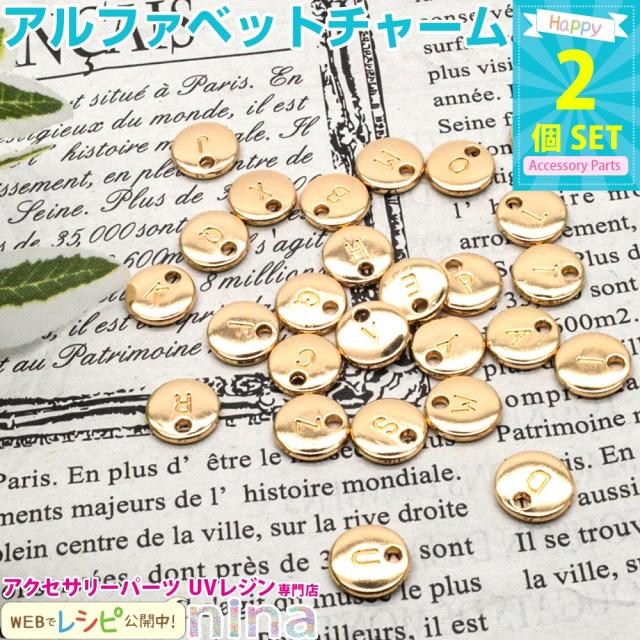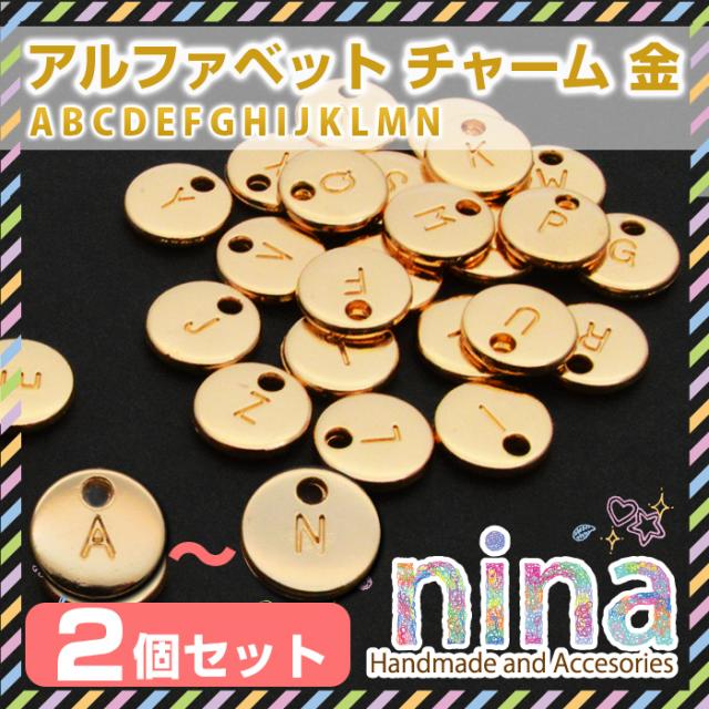 アルファベット 英字 イニシャル チャーム 丸 ゴールド 2個セット A-M イニシャルチャーム おしゃれ 手芸 イニシャルチャーム 手作り アルファベットチャーム ゴールド N レジン 金 丸 パーツ UVレジン ハンドメイド
