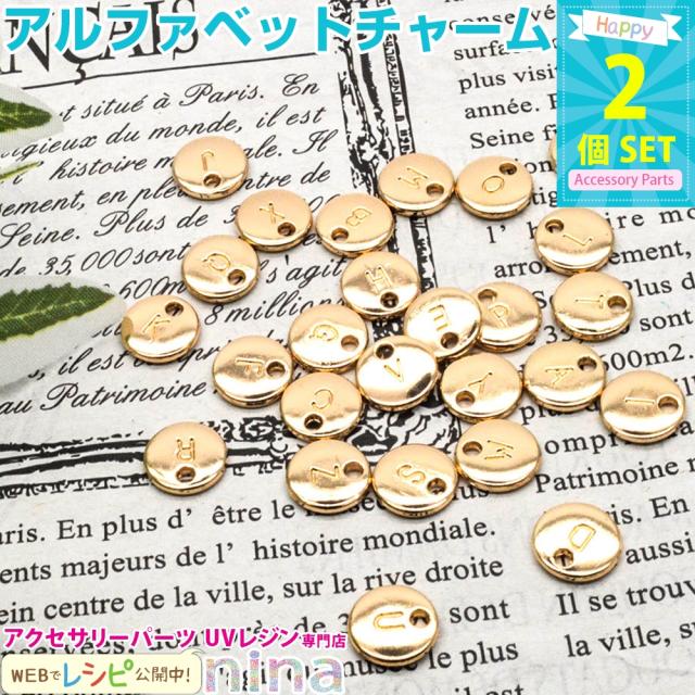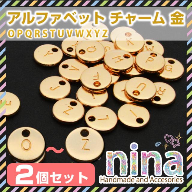 アルファベット 英字 イニシャル チャーム 丸 ゴールド 2個セット O-Z | ハンドメイド アルファベットチャーム UVレジン イニシャルチャーム 手芸 レジン 材料 アクセサリー 素材 パーツ チャーム ゴールド 金 円 丸 手作り キーホルダー ネックレス おしゃれ