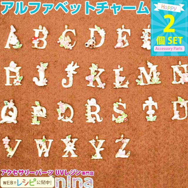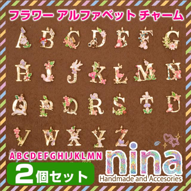 ■商品名:アルファベット 英字 イニシャル チャーム パーツ フラワー N 2個セット
