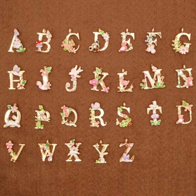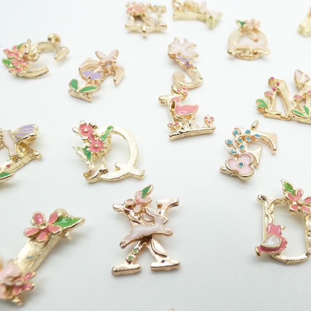 アルファベット 英字 イニシャル チャーム パーツ フラワー 2個セット A-M イニシャルチャーム おしゃれ 花 イニシャルチャーム ゴールド N アルファベットチャーム バックチャーム 手作り 素材 チャーム UVレジン フラワー 金