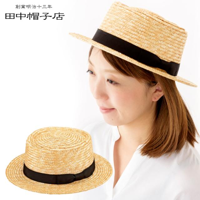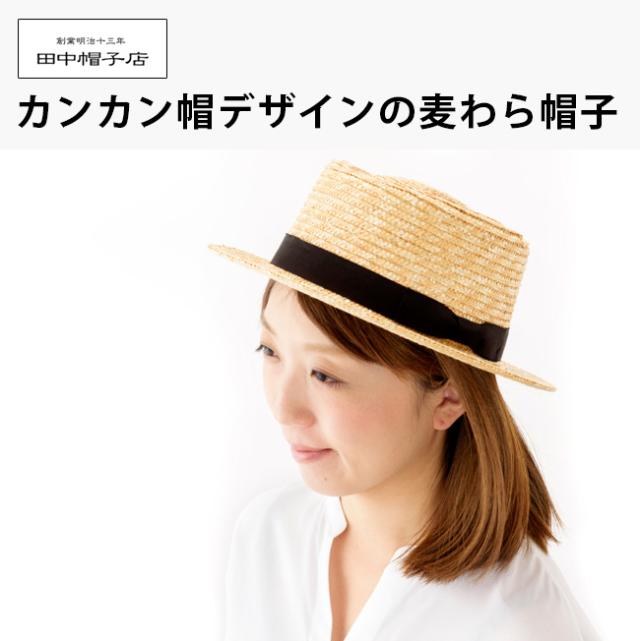 100年以上の歴史と伝統を誇る老舗、麦わら帽子ストローハットを作り続ける田中帽子店の逸品です。ナチュラルスタイルに合う、カンカン帽に似たデザインの麦わら帽子です。