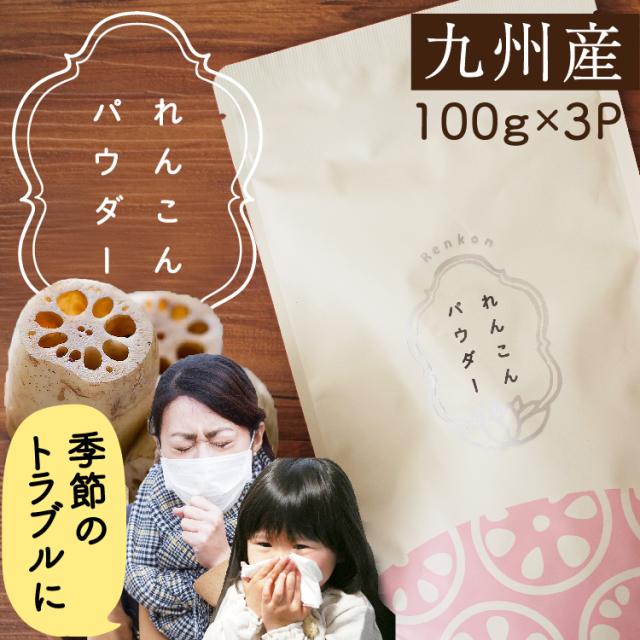 送料無料 花粉 マスク 免疫 れんこんパウダー 100g×3パック 九州産 野菜パウダー 甘酒 タンニン ムチン インフルエンザ 風邪 ポイント消化