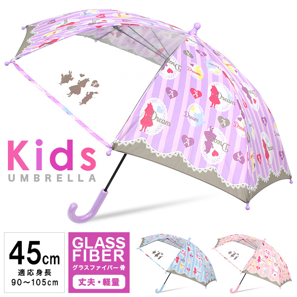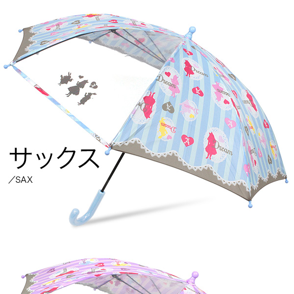 45cm 傘 キッズ 透明窓付 かわいい 子供傘 アリス柄 ギフト 小学校 小学生 入園 入学