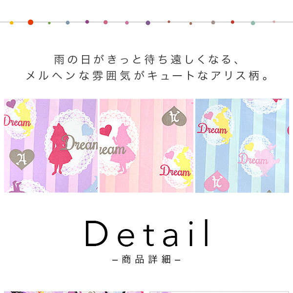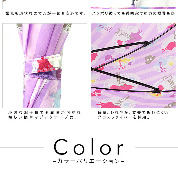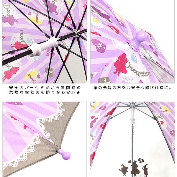 透明窓付きだから、スッポリ被っても視界も良好。アリス柄がかわいい安全・安心子供傘。