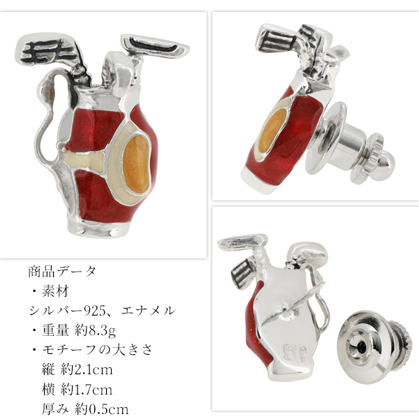 エナメル加工でバッグのレザーを表現し、ゴルフクラブの先まで丁寧に造形。