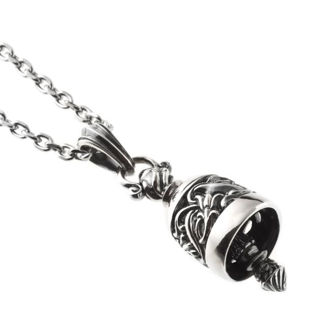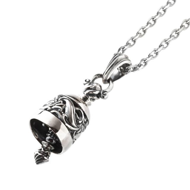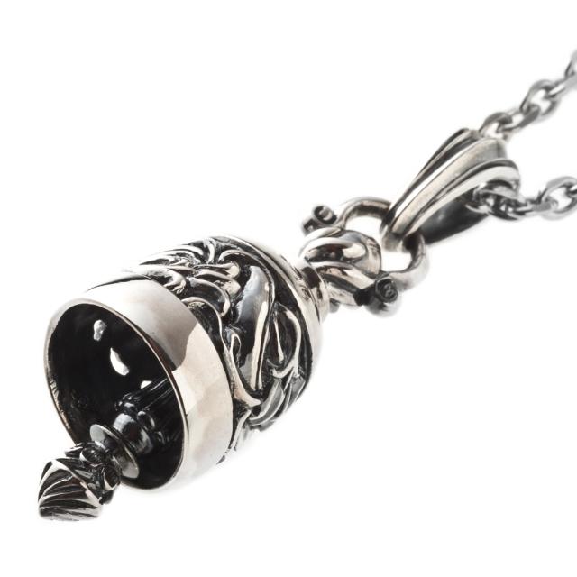 長年人気のベルペンダントのスモールバージョン。 澄んだとても美しい音色がするペンダント。 振り子のデザインは、神殿の支柱を思わせる優雅なデザイン。 植物を描いた唐草の透かし彫りが美しい作品。 所々に植物を連想させるデザインが散りばめられております。 細部にまで気遣いが行き届く徹底したデザイン。 その音色の美しさもさることながら、銀の光沢や質感をいかした作りも魅力の作品。 バランスよくまとまった優雅なシルエット。 ●スペック