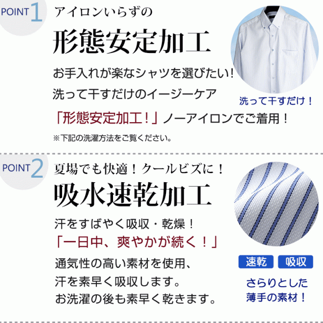 洗濯してから干すだけですぐに着用可能な「形態安定加工」