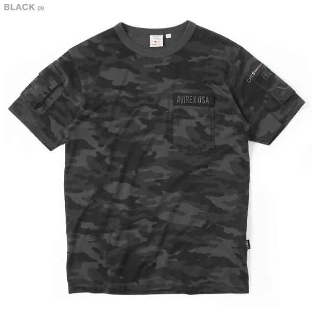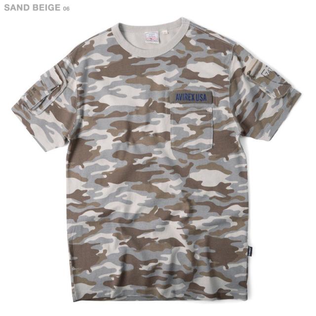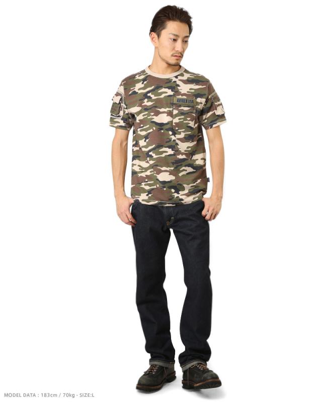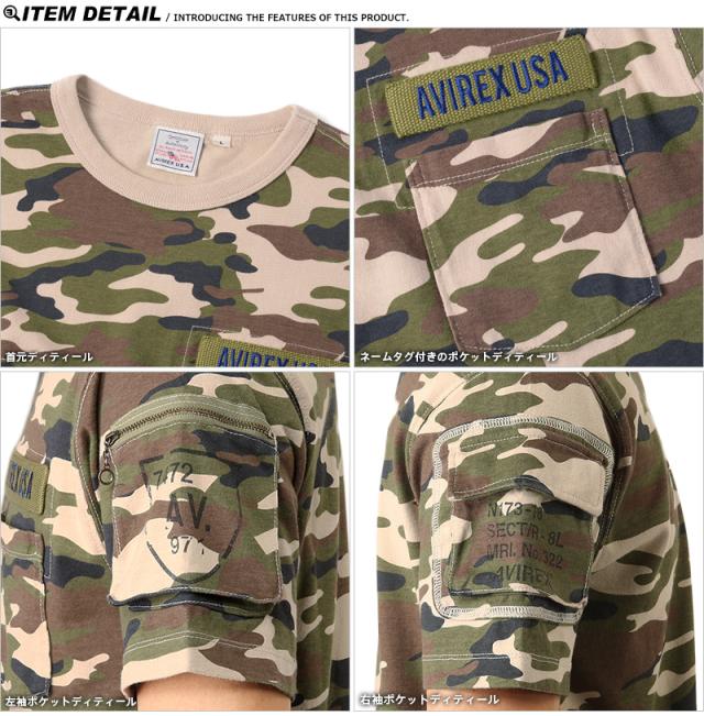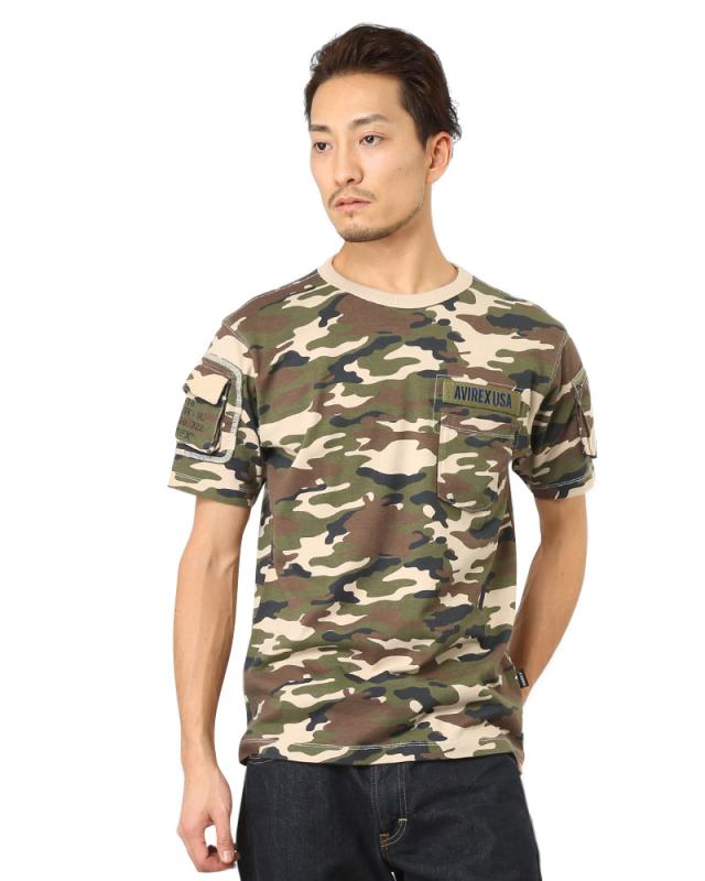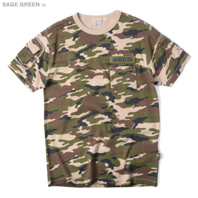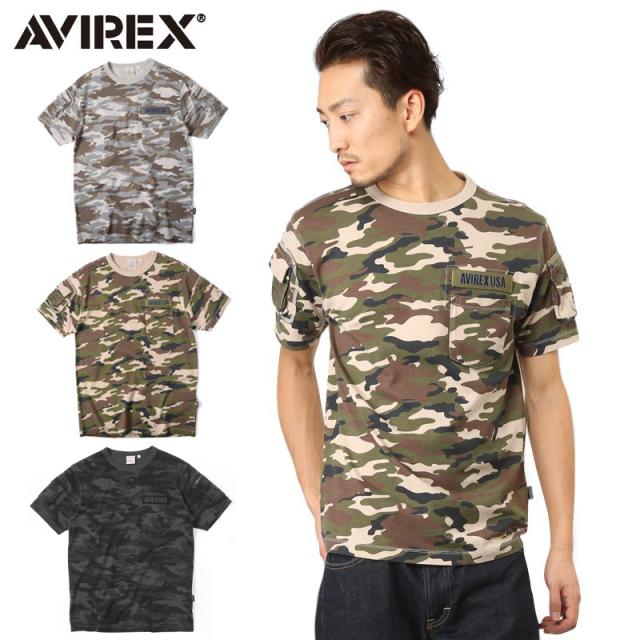 AVIREX アビレックス 6143387 FATIGUE クルーネックTシャツ CAMO【Cx】【T】|ミリタリー メンズ カモフラージュ カモ柄 迷彩 半袖 ポケット アメカジ USA トップス カジュアル ブランド ファッション