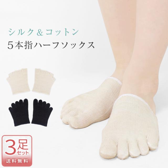 3足セット 5本指ハーフソックス シルク コットン つま先ソックス ハーフ 五本指 靴下 ソックス インナーソックス 絹 *1*2-2t *y3-4t