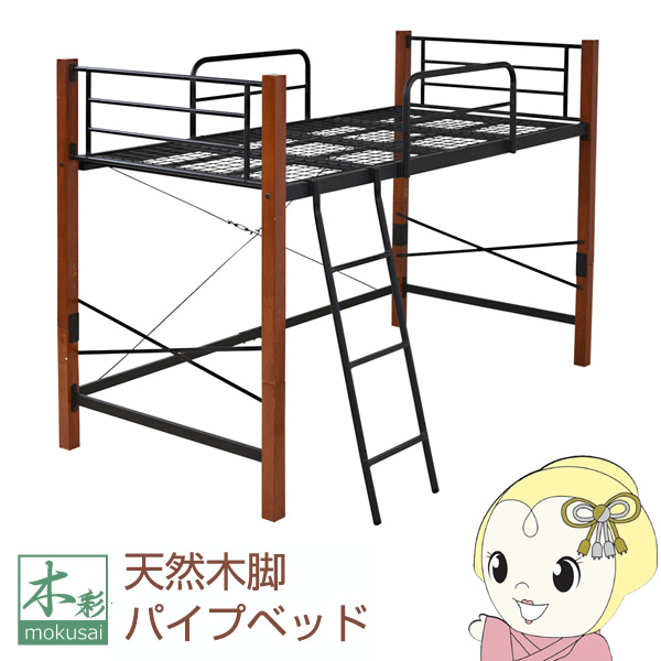 ベッド 天然木脚 ハイベッド シングル パイプベッド 高さ 140 長さ 209 木製 ロフトベッド おしゃれ