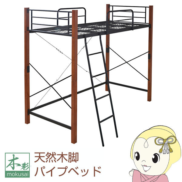 ベッド 天然木脚 ハイベッド シングル パイプベッド 高さ 140 長さ 209 木製 ロフトベッド おしゃれ