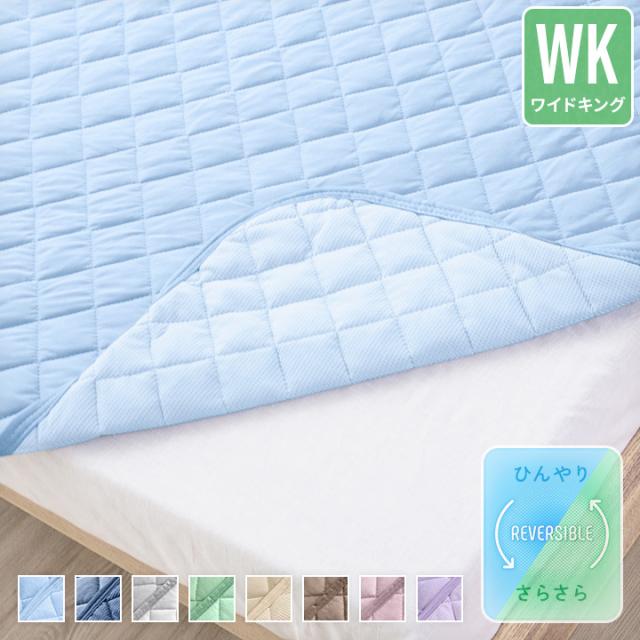 敷きパッド リバーシブル ワイドキングサイズ ひんやり接触冷感×さらふわ吸水速乾ワッフル 抗菌防臭防ダニ A759