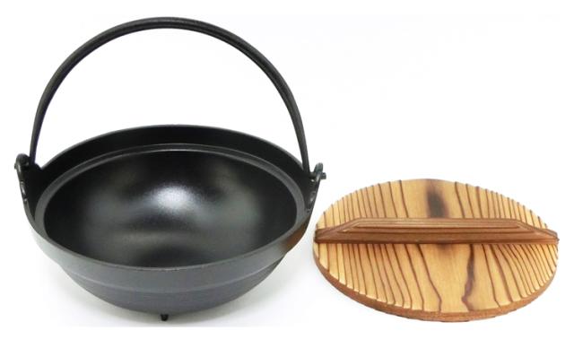 サイズ: (約)幅190×奥行180×高さ75mm 材質: 鍋/アルミニウム合金、つる/鉄、蓋/天然木重量: (約)400g