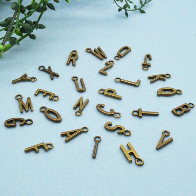 アルファベット 英字 イニシャル チャーム パーツ 金古美 2個セット O-Z | キーホルダー アルファベットチャーム かわいい イニシャルチャーム 素材 レジンレシピ チャーム 材料 手作り 銅 ハンドメイド UVレジン 手芸 ネックレス レジン アクセサリー イヤホンジャック