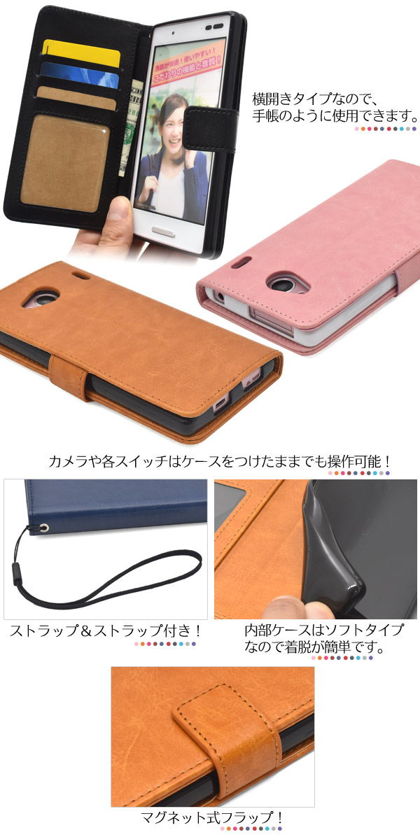 ※本製品はマグネットを使用しておりますのでクレジットカードなどの磁気カードの収納は避け、カードの注意事項をよくご確認の上ご使用ください。 読み取り等ができなくなる恐れがあります。※本製品に収納された、カードのデータ等が喪失された場合におきましても、 当社では一切保証致しかねます。※長時間接触していたり、強い力で擦れるとスマートフォンに色移りする場合がございます。※本製品をスマートフォンに装着する際には本体や本製品に付着したゴミやホコリをよく取り除いてください。 ホコリ等がついたまま装着すると、スマートフォンに傷がつく恐れがあります。