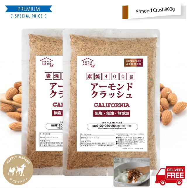 ほぼ粉末 アーモンドクラッシュ 素焼き800g(400g×2袋)粉砕加工 無添加 無塩 無油 ノンオイル ジッパー袋 ARMOND ナッツ NUTS ビタミンE アーモンド