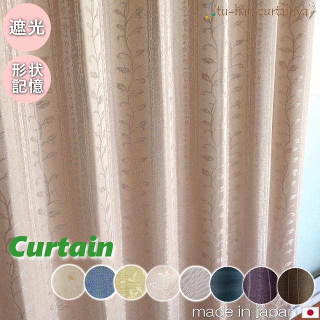 【日本製】カーテン 遮光3級 非遮光 形状記憶 断熱 保温 厚地【モデストフラワー・コバルトブルー・リバー・リーブス・オークルグロウ・シャドウブルー】無地 遮熱 省エネ 節電 シンプル おしゃれ リビング 和室インテリア