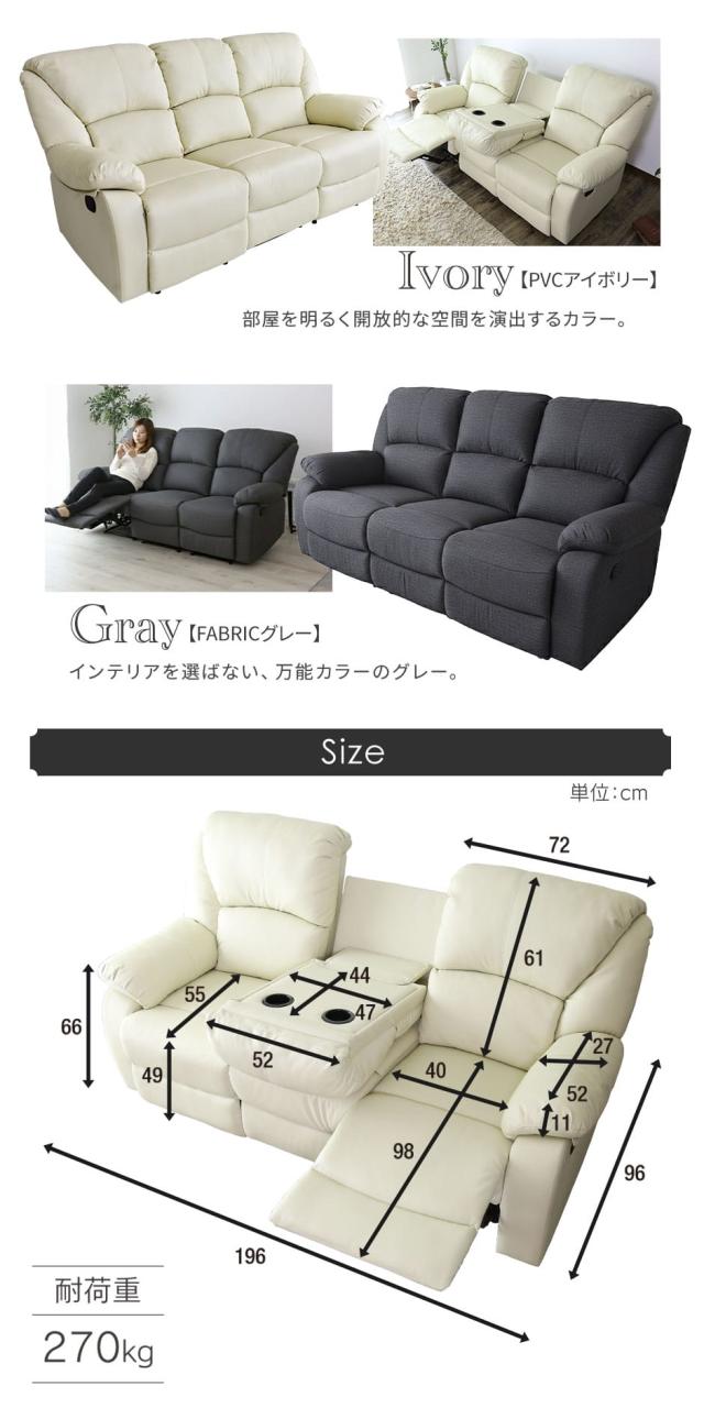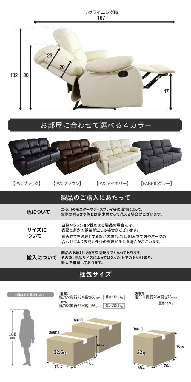 ◆商品名:リクライニングソファ ORIANA 3P【オリアナ】