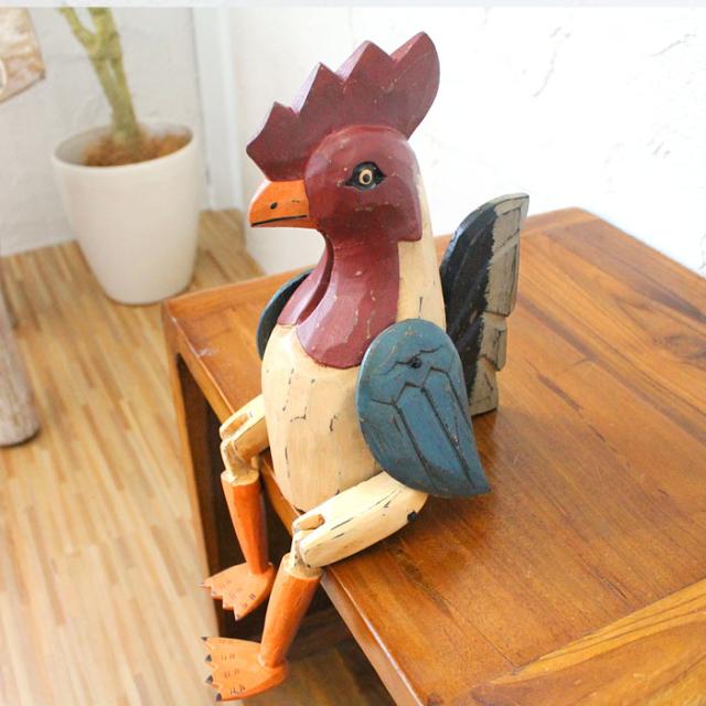 アジアン雑貨 手足が動かせる木彫りのパペット人形 ニワトリ