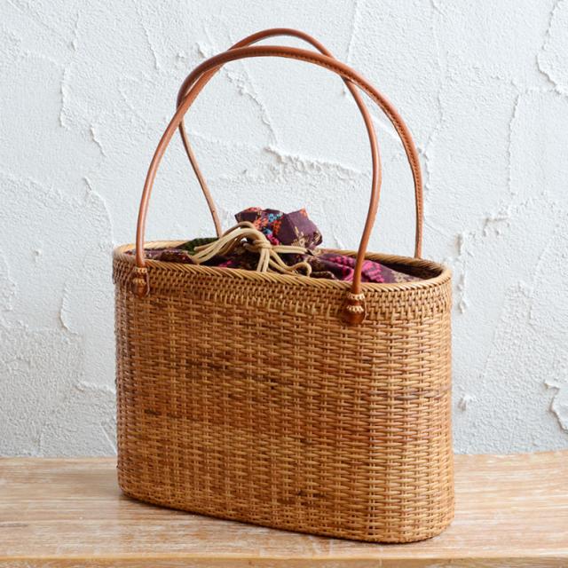 アタで編まれた アジアン かごバッグ[内袋付き](13230) おしゃれ トートバッグ レディース カゴバッグ 夏 ショルダー バスケット アジア