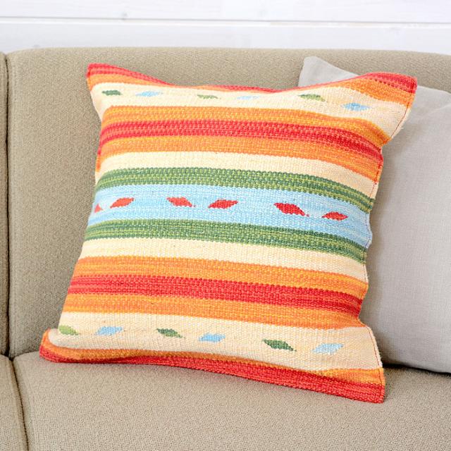 独特の幾何学模様と鮮やかな色使いで、お部屋にエスニック要素をお洒落にプラスしてくれます。コットン100%製の丈夫な生地で、季節を問わず使えるのも◎!