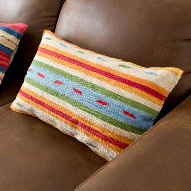 クッションカバー コットンキリム インド綿 約30×50cm おしゃれ 長方形 コットン 綿100 ネイティブ 民族 オルテガ モダン アジアン D
