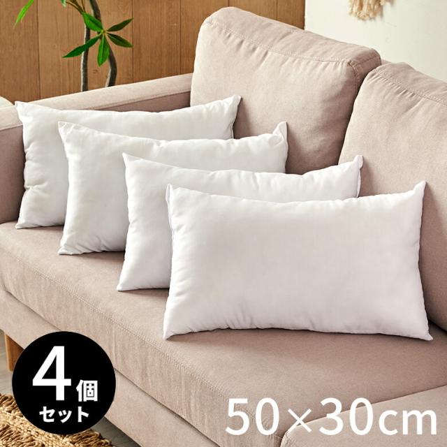 ヌードクッション 約30×50cm 角型 四角形 クッションカバー用 中材 肉厚 高品質 4個セット クッション中身 ふかふか 肉厚 洗濯